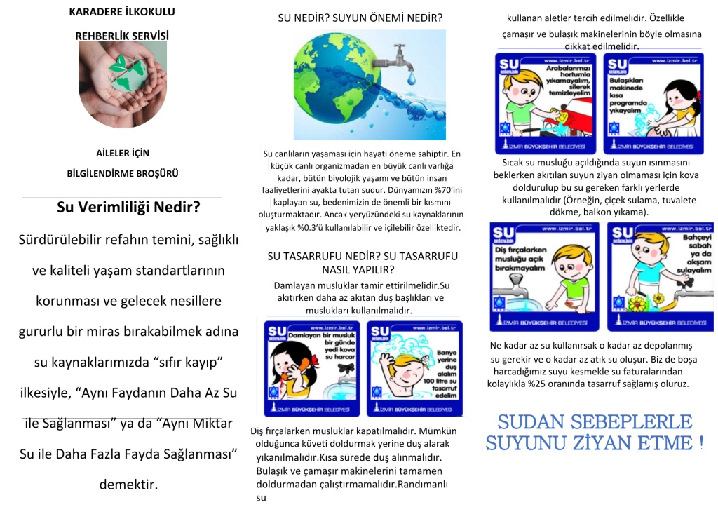 Ulusal su verimliliği seferberliği kapsamında, “Suyumuza sahip çıkalım” teması ile; her bir paydaşımızı ve bütün su kullanıcılarını kapsayacak şekilde çalıştaylar, eğitimler, atölye çalışmaları, farkındalığı artırıcı yayınlar ve benzeri etkinlikler ile su verimliliği kültürünün yaygınlaştırılması ve su verimliliği uygulamalarının hayata geçirilmesi hedeflenmektedir. Biz de okulumuzda çeşitli etkinlikler yaptık. Kodlama, video izleme, nokta birleştirme, hikaye, bulmaca ve doğru yanlış soru cevaplarıyla öğrencilerimizde farkındalık oluşmasını sağladık.